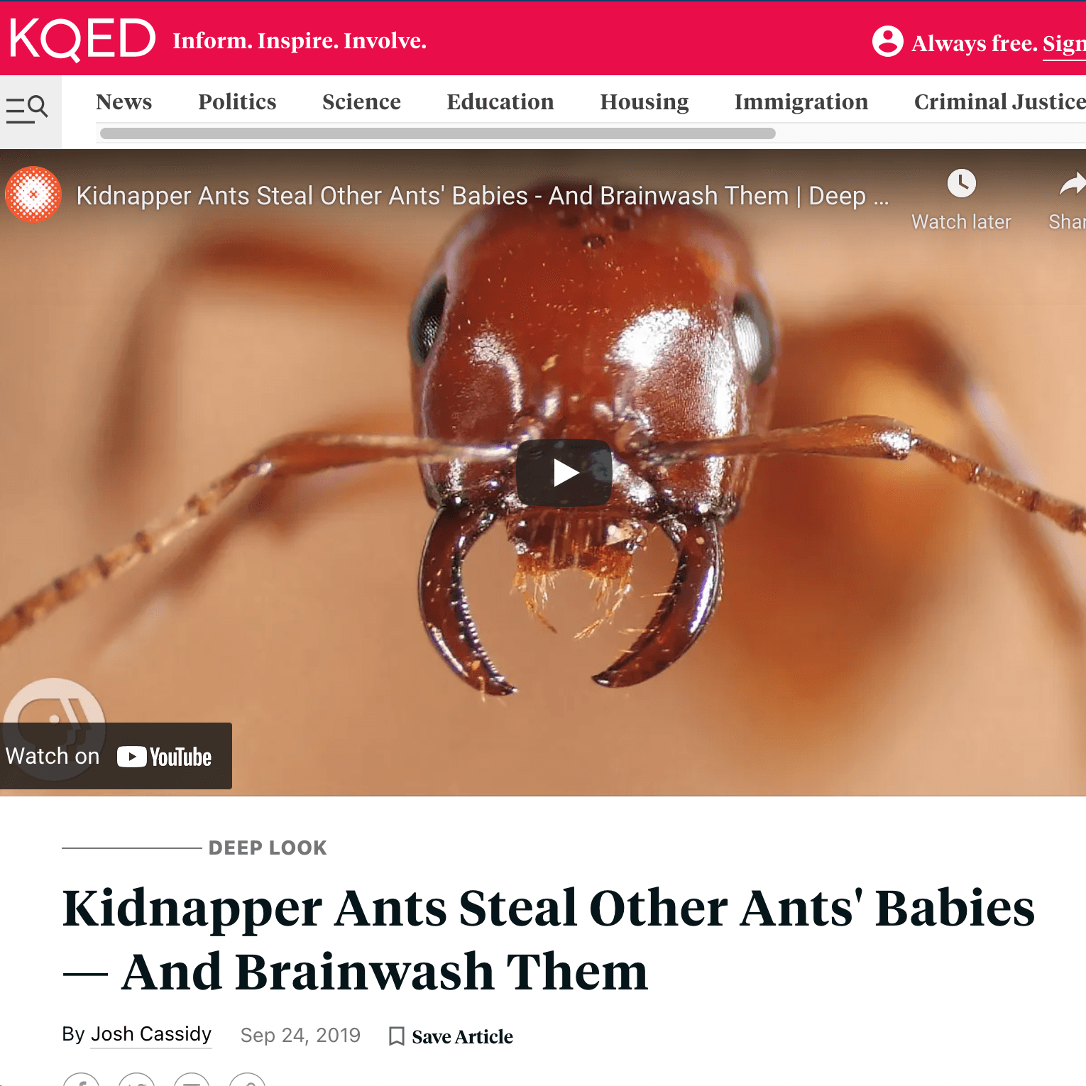 Cash EI, Escalona M, Ward PS, Sahasrabudhe R, Miller C, Toffelmier E, Fairbairn C, Seligmann W, Shaffer HB, and Tsutsui ND. (2024) Reference genome of the kidnapper ant, Polyergus mexicanus. Journal of Heredity esae047. https://doi.org/10.1093/jhered/esae047